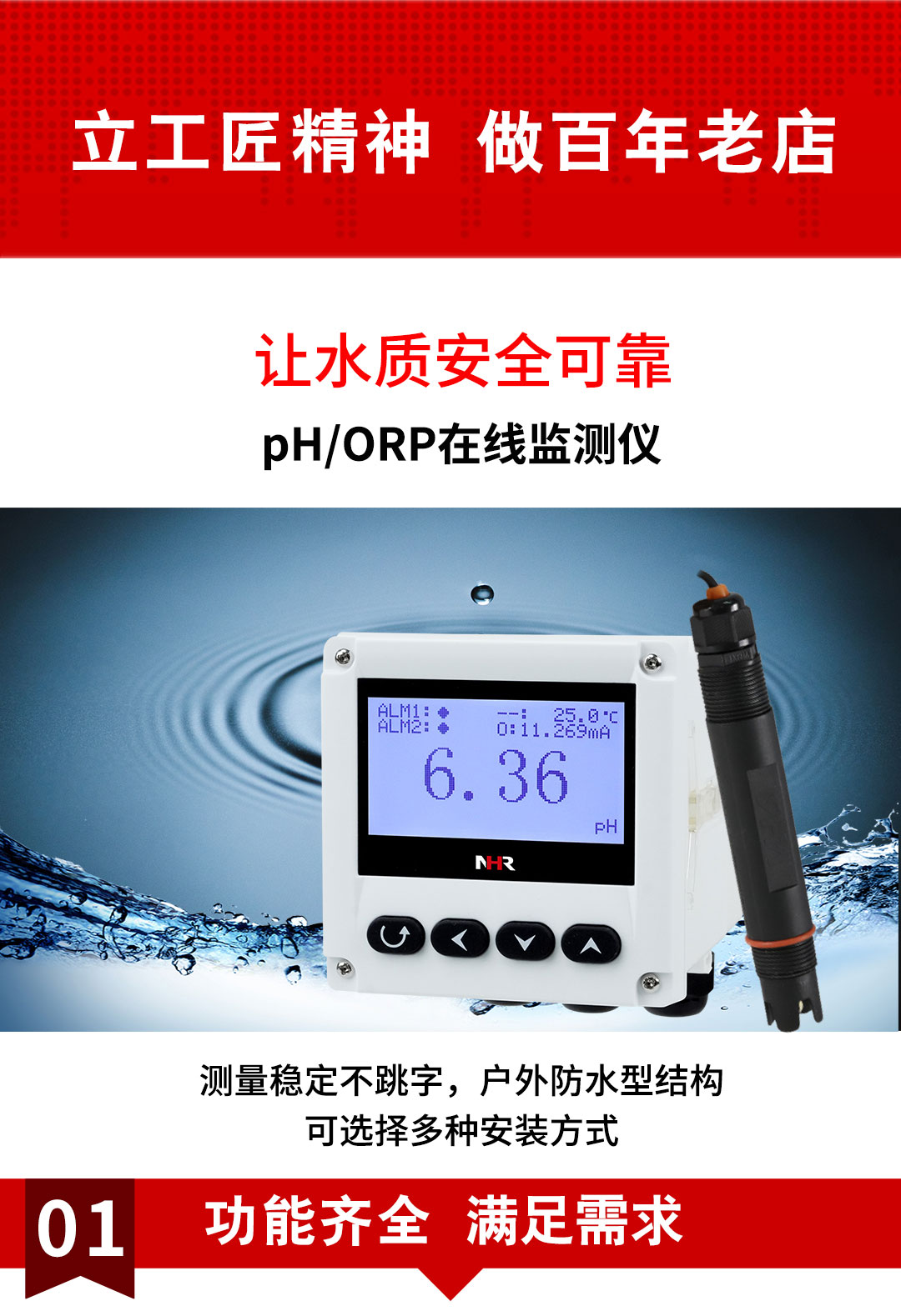 虹潤(rùn)公司是專業(yè)生產(chǎn)水質(zhì)分析儀的國(guó)家專精特新“小巨人”企業(yè)。生產(chǎn)的PH/ORP在線監(jiān)測(cè)儀,具有多元化安裝方式,IP65防護(hù)等級(jí),多種類型輸出,測(cè)量精準(zhǔn)穩(wěn)定不跳字,變送輸出精準(zhǔn)等特點(diǎn)。產(chǎn)品獲得一種適應(yīng)性強(qiáng)PH控制儀、智能化控制器等2項(xiàng)國(guó)家發(fā)明專利;主持起草現(xiàn)場(chǎng)設(shè)備集成等5項(xiàng)智能制造國(guó)家標(biāo)準(zhǔn),以及現(xiàn)場(chǎng)設(shè)備工具(FDT)接口規(guī)范、工業(yè)過(guò)程控制系統(tǒng)用模擬輸入兩位或多位輸出儀表、過(guò)程分析技術(shù)系統(tǒng)等3項(xiàng)國(guó)家標(biāo)準(zhǔn);參與國(guó)際5G標(biāo)準(zhǔn)制定,取得PH值測(cè)量?jī)x表等2項(xiàng)相關(guān)軟件著作權(quán)。產(chǎn)品廣泛應(yīng)用于實(shí)驗(yàn)室、水處理、環(huán)境監(jiān)測(cè)、食品、制藥、農(nóng)業(yè)等諸多領(lǐng)域。