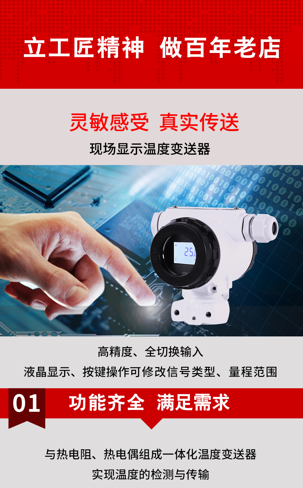 虹潤公司是專業(yè)生產(chǎn)溫度變送器的國家專精特新“小巨人”企業(yè)。生產(chǎn)的現(xiàn)場(chǎng)顯示溫度變送器,具有可修改輸入信號(hào)類型,測(cè)量精度高,響應(yīng)時(shí)間快,IP65防護(hù)等級(jí)等特點(diǎn)。該產(chǎn)品不僅通過德國萊茵 CE 認(rèn)證與 SIL 功能安全認(rèn)證,還獲得具備減震抗干擾能力的溫度變送器、信號(hào)隔離器、一種二端子模塊、無源信號(hào)隔離器等3項(xiàng)國家發(fā)明專利。主持起草物聯(lián)網(wǎng)智能溫度儀表、現(xiàn)場(chǎng)設(shè)備工具(FDT)接口規(guī)范、工業(yè)過程測(cè)量和控制系統(tǒng)用溫度變送器等3項(xiàng)國家標(biāo)準(zhǔn),以及通信系統(tǒng)多通道數(shù)據(jù)采集控制終端規(guī)范軍用標(biāo)準(zhǔn)。參與國際5G標(biāo)準(zhǔn)制定,取得高精度溫度變送器等3項(xiàng)相關(guān)軟件著作權(quán)。產(chǎn)品廣泛應(yīng)用于石油、化工、電力、冶金、制藥、食品、水處理等各種工業(yè)領(lǐng)域。