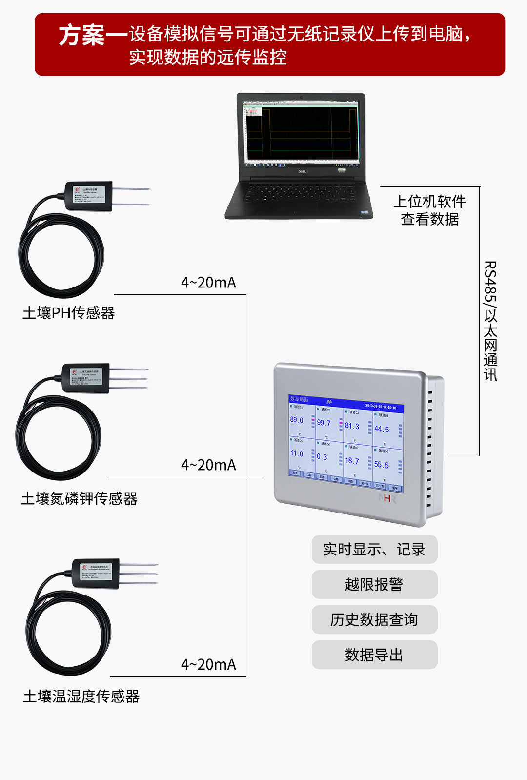 環(huán)境監(jiān)測儀 大屏溫濕度記錄儀 溫濕度儀表 環(huán)境參數(shù)變送器 直插式土壤傳感器