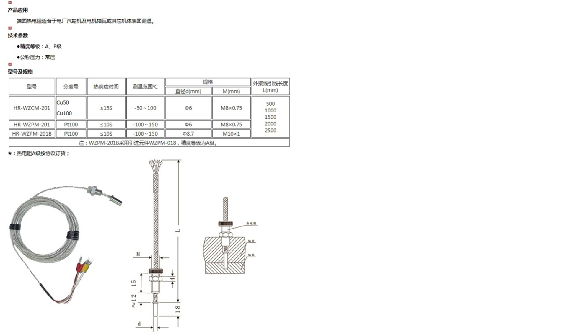 端面熱電阻元件由特殊處理的絲材(銅或鉑絲)繞制,它們緊巾在溫度計(jì)前端,與一般軸向熱電阻相比,端面熱電阻能更正確和迅速地反映被測(cè)端面的實(shí)際溫度狀況,它的制作方法很多,品種形式多樣,適合于電廠汽輪機(jī)及電機(jī)軸瓦或其它機(jī)體表面測(cè)溫。