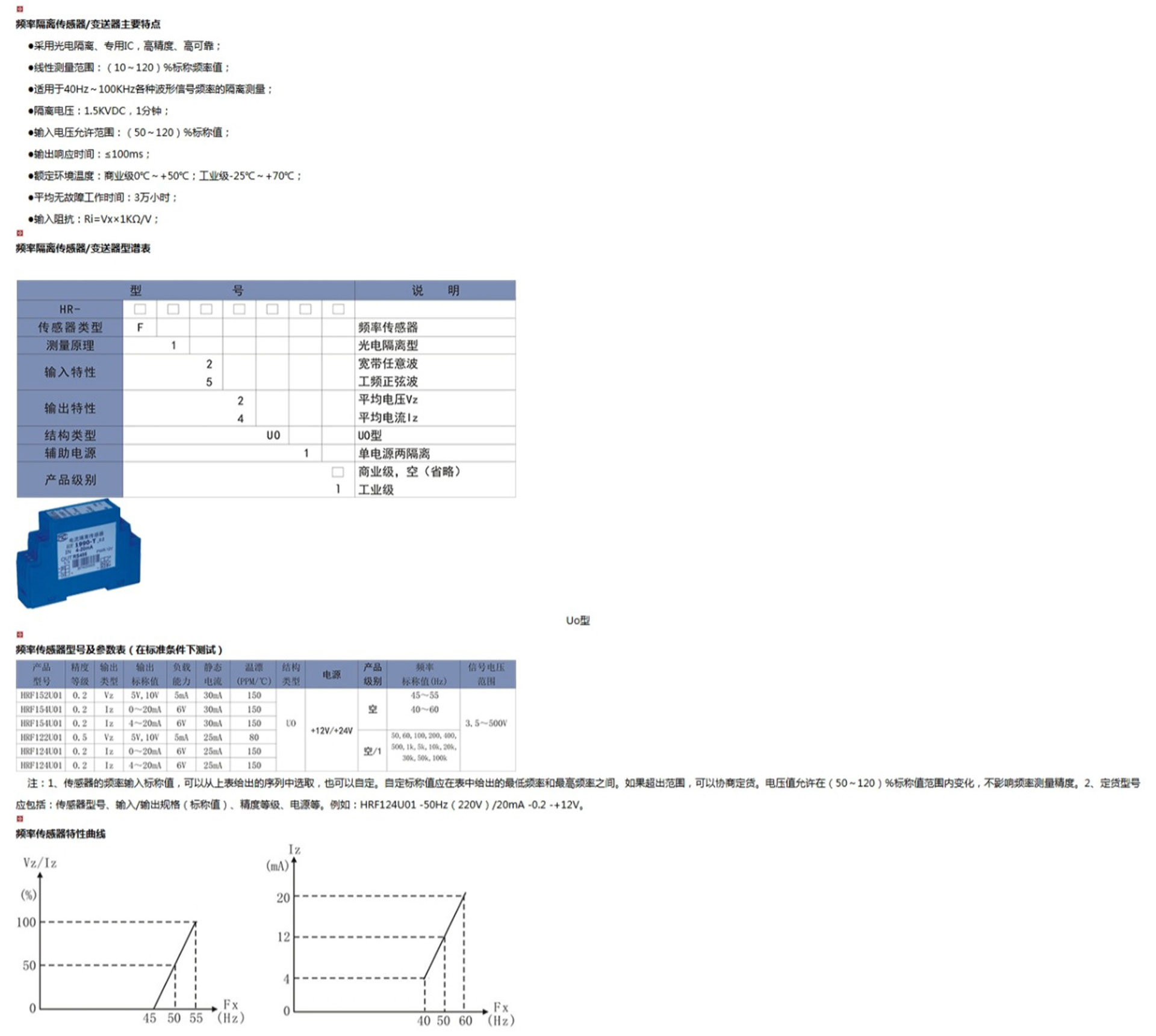 頻率隔離傳感器/變送器是指被測交流電壓頻率隔離轉(zhuǎn)換成按線性比例輸出的單路標準直流電壓或直流電流。